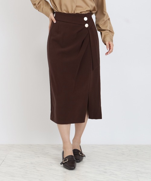 フロントのドレープ感が高見え◎ きれいめなミモレ丈のハイウエストスカートがリリース。 さり気ないアシメボタンのデザインは、上品かつ華やかに仕上がります。 ハイウエストでストレートシルエットのスカートは体型を拾いにくく、腰回りをカバーしスタイルアップ効果も◎ 裾スリットで足さばきもバッチリも良く、バックゴムで自然なメリハリも演出します♪ オフィスはもちろん、デートや食事会にもおすすめのアイテムです♪ 【TRUDEA(トルディア)】by Astoria(アストリア)毎日着るものだからこそ素材や着心地にこだわりを! 洗練されたデザインに程よいトレンド感をMIXした働く女性のワードロープを提案します。 ベーシックなデザインなので、通勤やオフィスでのお仕事スタイルおすすめです。 また、就職活動やセレモニーなどオケージョンシーンにも◎ ビジネスなどのオンスタイルや、コーディネートするアイテム次第で、きちんと感を出しながらオフィスカジュアルやオフスタイルにも◎
