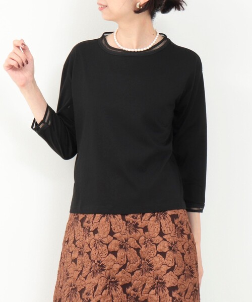 ◇25AW◇ MICO COULIER きれいめにもカジュアルにも合わせやすい MADE IN JAPANの7分袖カットソー ◆Point ・襟ぐりと袖口のリブ部分に透けるデザインを入れたカットソー ・きれいな表面感の、柔らかくなめらかなコットン100% ・華奢に仕上げたリブ部分はニット素材になり上品な印象 ・さりげない透け感が首元と手元をすっきりと見せてくれます ・ほどよくゆとりのあるサイズ感 ・ボトムにインでもアウトでも決まるスッキリとした丈感◎ ・前後差のあるヘムとサイドスリット入り ・オンオフ問わず使いやすいシンプルなデザインで着回しに便利なアイテム ・1枚でもジャケットのインナーにも映える、バリエーションに加えたいアイテム ---------------------------------------------------------- 透け感:オフホワイト:あり、グレイッシュベージュ:ややあり、ブラック:なし 裏地:なし 伸縮性:あり 光沢感:なし 洗濯:手洗い可 ---------------------------------------------------------- 気になる商品は、お気に入り登録がオススメです! クーポン情報、入荷情報が通知されるようになります ---------------------------------------------------------- ●お取扱い上のご注意● 末永くご愛用頂くために、アテンションタグを必ずご確認の上、着用又はお取り扱い下さい。 ※店頭及び屋外での撮影画像は、光の当たり具合で色味が違って見える場合があります。商品の色味は、スタジオ撮影の画像をご参照下さい。 ※商品画像に関しては出来る限り忠実に表示出来るよう努めておりますが、お客様がご利用のモニターの設定及び特性により、実際の商品と比較し色味に若干の誤差が生じる場合があります。 ※製品洗い加工の商品は、多少の歪み、シワなどが見られたり、風合いやサイズ等が1枚1枚異なります。汗や雨等で濡れた時や、摩擦により色落ちし、他の衣料を汚すことがありますので(特に濃色のもの)ご注意ください。