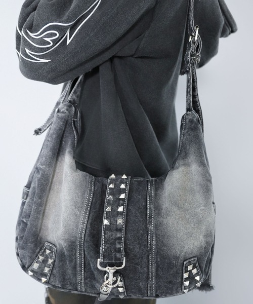 【DESIGN / デザイン】色落ち加工を施したクラッシュデニムに、存在感抜群のスタッズをプラスしたグランジ感漂うショルダーバッグ。無骨さの中にエッジの効いたデザインで、持つだけでコーデの主役になる一点です。ショルダーでもハンドでも使えるシルエットで、Y2K・ストリート・グランジスタイルと相性抜群。【POINT / ポイント】・色落ち×クラッシュ加工のデニム素材・スタッズディテールがアクセントになり、存在感抜群・大容量サイズでデイリーからイベントまで幅広く対応・ショルダー&ハンドの2WAY仕様で使い分け可能・ユニセックスで使えるデザイン※掲載画像(商品、モデル着用とも)につきまして、撮影環境やお客様の閲覧されますパソコンや携帯電話キャリアによって、実際の商品とは多少異なった色に見える場合があります。また表示のサイズ感も実物とは若干異なる場合もございますので、予めご了承ください。※タグ・バーコードのついたシールには、サイトのご案内と異なるカラー名が記載されていることもございます。ご了承ください。- - - - - - - - - - - - - - - - - - - - - - - - - - - -【「お気に入り登録」でお得な情報が届きます】・「商品のお気に入り登録」で再入荷通知、ラスト1点の通知、セール通知などを受け取ることができます。・「ブランドのお気に入り登録」で新商品、人気アイテムの再入荷など、お得な情報を受け取ることができます。- - - - - - - - - - - - - - - - - - - - - - - - - - - -