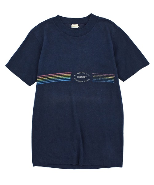※こちらはヴィンテージ商品となります。 下記のattentionをご確認の上、ご購入下さいますようお願いいたします。 --------------------------------------------------------- コンディションランク:B ■size タグ表記:S 実寸:40cm/37cm/61cm/17cm(身幅/肩幅/着丈/袖丈[ゆき丈]) ■condition 色褪せ/毛玉/ヤケ/プリント擦れ/着用感 ■point アメリカ・ケンタッキー州のマンモスケーブ国立公園をモチーフにしたヴィンテージTシャツ。 フロントにはレインボーカラーのラインとロゴを組み合わせた、ミニマルながら存在感のあるデザインが施されています。 ボディは1970〜80年代頃の“ベルバシーン”製。 USA製のしっかりとした生地感に加え、袖裾はシングルステッチ仕様となっており、当時のディテールを堪能できる一着です。 落ち着いたネイビーボディに映えるプリントが、シンプルなスタイリングに程よいアクセントを加えてくれます。 古着ならではのこなれた風合いを楽しめるコンディションです。 ■Vintage clothing store【LABORATORY®】 原宿に店舗を構える老舗Vintage Clothing Store。 バンドTシャツを中心に、独自のセレクトで個性的なアイテムを取り扱っています。 ZOZOTOWN STOREでは、現行のファッションにも馴染みやすく、古着特有の独特なムードやコンディションを気軽に楽しんでいただけるアイテムを提案いたします。 加工等では味わえない“リアル”な古着をお楽しみ下さい。 --------------------------------------------------------- ■attention ※こちらはヴィンテージ商品のため1点ものです。 交換・修理はいたしかねます。 ヴィンテージ商品につき、どちらの商品にも多少のシミ・ダメージ・使用感がございます。 このようなヴィンテージ商品の性質を十分ご理解いただいた上で、ご注文くださいますようお願いいたします。 商品状態につきましては詳細にお伝えするよう努めておりますが、細かな点の表記には限りがございます。 画像につきましても、実商品の色味に近しいものを掲載するよう心がけておりますが屋内での撮影のため、多少の誤差が生じる場合がございます。 また、ご覧のモニター環境により、画像の色味と多少異なる場合がございます。 どうかご理解いただきますようお願いいたします。 ※コンディションランク コンディションランクは当店の主観により判断しておりますので、あくまで一つの目安とお考えいただき、商品の写真や説明文と併せてご参照ください。 軽微なダメージや薄い汚れ、多少の色褪せなど、USEDの使用感の範囲内と判断したものは説明を省いている場合がございます。 S:未使用または新品の商品など A:使用感が少なく、かなり状態が良いなど B:使用感はあるが、傷や汚れが少ないなど C:使用感の他、傷や汚れが見られるなど D:かなり大きな傷みがある難ありなど --------------------------------------------------------- お気に入り登録のオススメ ▼商品のお気に入り登録▼ 再入荷、残り1点、セールなどの通知を受け取ることができます。 ▼ブランドのお気に入り登録▼ 新商品や再入荷、ショップのおすすめトピックスなど、いち早くブランドの情報を受け取ることができます。 ---------------------------------------------------------