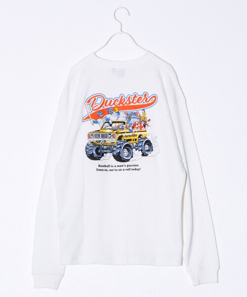 ヴィンテージ感漂うピグメント加工ワッフルロンT遊び心あるグラフィックで1枚でも主役に【おすすめポイント】・ピグメント加工でヴィンテージ感を演出着込んだような風合いがこなれ感をプラス。・ワッフル素材で柔らかな着心地通気性と伸縮性に優れ、シーズンレスで活躍。・架空の野球チームをモチーフにしたグラフィックバックプリントのキャッチーなデザインが存在感抜群。・ユニセックス対応メンズはもちろん、女性がオーバーサイズで着ても◎。・デイリー使いしやすい3カラー展開ホワイト・ブルー・ブラックで幅広いスタイルにマッチ。【おすすめスタイリング】・カジュアルデイリーデニムと合わせて、古着ライクなストリートスタイルに。・スポーツMIXワイドパンツやキャップを合わせ、アクティブ感を演出。・大人カジュアルテーラードジャケットやシンプルアウターのインナーに差し込み、遊び心を効かせたスタイルに。#Duckster #ダックスター #ワッフルロンT #ヴィンテージライク #ユニセックスコーデ #古着MIX #大人カジュアル #ストリートスタイル #バックプリントロンT #ピグメント加工【Duckster/ダックスター】Ducksterは1957年アメリカコネチカット州ハムデンにてゴルフウェアブランドとして創業。ブランド名でもある"duck"="カモ"をキャラクターアイコンとして使用し、当時アメリカで流行していたゴルフ人気に乗り各ゴルフ場でも商品を扱っていました。その後、Ducksterはスポーツウェアブランドへと発展。そして2024年S/SよりDucksterがリブランディング。ブランドのルーツでもあるスポーツをベースに、アスレチック~アーバン~アウトドアスポーツまで、現代のライフスタイルに寄り添ったご提案をしていきます。※お取扱い上のご注意アテンションタグを必ずご確認の上、着用又はお取り扱いください。※店頭及び屋外での撮影画像は、光の当たり具合で色味が違って見える場合があります。※商品画像に関しては出来る限り忠実に表示出来るよう努めておりますが、お客様がご利用のモニターの設定及び特性により、実際の商品と比較し色味に若干の誤差が生じる場合があります。◇商品のお気に入り登録◇【お気に入りに登録】を是非ご活用ください。 再入荷の通知や、ラスト1点の通知、セールの通知がいち早く届きます。◇ブランドのお気に入り登録◇新商品や再入荷など、いち早くブランドのお得情報が届きます。