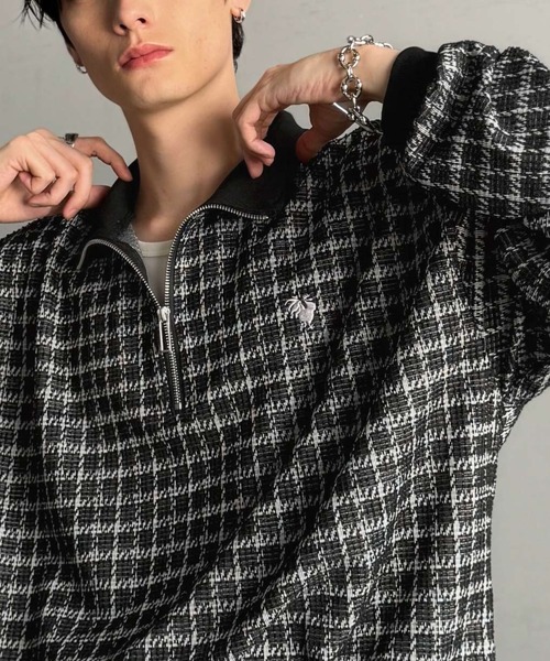 チェック柄のツイード生地トップスカジュアルと上品さを両立した一枚。「Tweed Fabric Drawcord Half-Zip Pullover/裾ドロスト付きツイード素材ハーフジッププルオーバー」表面感のあるツイード生地を使用したハーフジッププルオーバー。裾にはドロストを備え、シルエットを調整できる仕様。胸元のワンポイント刺繍と裾のピスネームがさりげないアクセント。上品な質感を持つツイードをカジュアルに落とし込むことで、幅広いスタイリングに対応可能。■point・ハーフジップ仕様・チェック柄ツイード素材・裾ドロストでシルエット調整可能・胸刺繍とピスネームがアクセント■detail上質素材をカジュアルに仕立てた「Tweed Fabric Drawcord Half-Zip Pullover/裾ドロスト付きツイード素材ハーフジッププルオーバー」伸縮性のあるツイード生地を採用し、動きやすく快適な着用感を実現。ハーフジップは開閉で印象を変えることができ、裾のドロスト仕様によりシルエットの調整も可能。胸元のワンポイント刺繍と裾のピスネームがブランドらしいアクセントとなり、シンプルながら個性を感じさせるデザイン。ワイドパンツやワークパンツとの相性が良く、モードからカジュアルまで幅広いスタイルに対応。■fabric伸縮性のあるツイード生地……………………透け感:なし厚さ:普通伸縮性:あり裏地:なしポケット:なし洗濯方法:手洗い可……………………※詳しいお手入れ方法は商品タグをご参照ください。■推奨サイズSサイズ : ~168㎝Mサイズ : 169㎝~174㎝Lサイズ : 175㎝~※標準体型を基にした目安です。体型や好みによって個人差があります。■coordinate1枚で着ても存在感のあるデザインは、スラックスやワイドパンツとの相性抜群!着こなし次第でカジュアルにもきれいめにも自由に楽しめます!寒い時期はインナーにタートルニットやカットソーを重ねたレイヤードスタイルもおすすめです♪裾をタックインしてきれいめに、あえてルーズに着こなしてストリートライクにも仕上がります☆足元は革靴やローファーで引き締めると、より都会的な印象に。テーラードジャケットを重ね着すれば、トレンド感も加わって、こなれた雰囲気に。あなたのスタイリングで、コーディネートを楽しんでみて♪■Classical Origin /クラシカルオリジン~ Redefining Modern Style ~「クラシックにルーツを持ちながら、それを新しい解釈で現代的なスタイルにつなげる」というメッセージを込めたブランド。ファッションを通して自己表現を行い、誰もが「今、心から着たいと思える服」を提案。■SNS新着アイテムやお得なセール情報を毎日配信中コーデのご参考にも...【公式 Instagram】@classicalelf_official【公式 TikTok】@classicalelf_official※ご覧のモニター環境により、画像の色味と多少異なる場合がございます。★《お気に入り登録》でお得な情報がいっぱい★・「商品のお気に入り登録」で再入荷通知や、ラストの通知、セール通知も受け取ることができます。・「ブランドのお気に入り登録」で新商品や再入荷など、お得な情報を受け取ることができます!