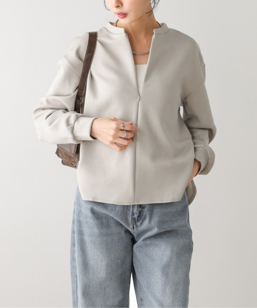 ジップの開閉で印象チェンジ着回し力抜群のプルオーバーフロントジップで大人の抜け感ときちんと感を両立するプルオーバー。ジップを閉じれば衿付きクルーネックとしても着用いただけます。1枚での着用はもちろん、シャツやタンクトップなど、インナー次第で違ったレイヤードコーデを楽しめるアイテムです。Point 01フロントジップデザインフロントジップを開けば抜け感のあるキーネック、閉じればきちんと感のあるクルーネックに。気分やシーンに合わせて印象を変えられる、着回し力抜群のデザインです。Point 02サイドスリットで抜け感をプラス両サイドに入ったスリットが、軽やかな抜け感を演出。長めの丈感でも動きやすく、気になるヒップラインを自然にカバーしてくれるのも嬉しいポイントです。【25AW】■Fabricもっちりとした弾力感が魅力のダンボール生地程よいハリ感に伸縮性の高さが魅力---------------------透け感:なし裏地:なし厚さ:普通伸縮性:あり---------------------▼《お気に入り登録》でお得な情報がいっぱい▼・「商品のお気に入り登録」で再入荷通知や、ラストの通知、セール通知も受け取ることができます。・「ブランドのお気に入り登録」で新商品や再入荷など、お得な情報を受け取ることができます!