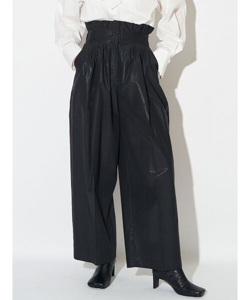 WAIST PIN TUCK PT ベルトにピンタックディティールを施しトップスをタックインした際も様になるワイドパンツ。 後ろウエストはゴムになっておりストレスフリーな履き心地。 梳毛調の杢チャコールと少しエッジの効いた印象のチンツ素材ブラックの2色展開。 やや落ち感のある素材感でワイドシルエットでも履きやすくニットアイテムとも相性抜群。 ・・・・・・・・・・・・・・・・・ 裏地:なし 透け感:なし 伸縮性:なし 生地の厚さ:やや薄い ・・・・・・・・・・・・・・・・・【 お買いものにおすすめの便利機能! 】▽商品のお気に入り登録完売カラーの再入荷時や、ラスト1点の時、セール開始時にお知らせします。 ▽ブランドのお気に入り登録新商品や再入荷、セール情報など、いち早くブランドのお得な情報を受け取ることができます。ぜひご活用ください。 ※実際にお届けする商品と仕様やサイズが異なる場合がございます。また生産の都合上、お届け時期が前後する場合がございます。