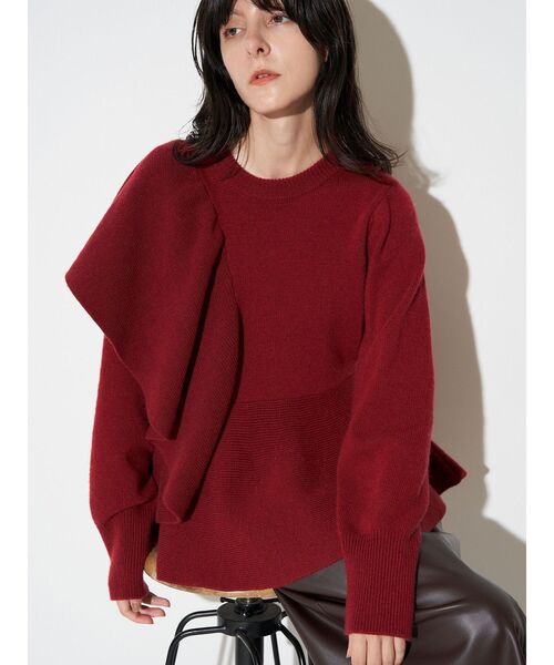 SHOULDER FRILL PEPLUM KT 昨年も大好評だったアシンメトリーのフリルディテールが華やかなプルオーバーニット。 肩回りをすっきりと着やすく昨年デザインからリモデル。 ウール混の糸を使用し柔らかな起毛感のある素材で、立体的なショルダーフリルが目を引くデザイン。 丈を後ろ下がりにしたペプラムデザインでおなかまわりとヒップをカバー。 袖はタックを取りフォルム感のある仕上がりに。 袖口にかけて細く仕上げており袖をたくし上げた着こなしもおすすめ。 首元はややハイネックでミニマルに仕上げモードな雰囲気に。▼1月中旬入荷予定 グレー・ブラウン予約はこちらショルダーフリルペプラムニット(品番:512612621801) ・・・・・・・・・・・・・・・・・ 裏地:なし 透け感:なし 伸縮性:あり 生地の厚さ:普通 ・・・・・・・・・・・・・・・・・【 お買いものにおすすめの便利機能! 】▽商品のお気に入り登録完売カラーの再入荷時や、ラスト1点の時、セール開始時にお知らせします。 ▽ブランドのお気に入り登録新商品や再入荷、セール情報など、いち早くブランドのお得な情報を受け取ることができます。ぜひご活用ください。 ※実際にお届けする商品と仕様やサイズが異なる場合がございます。また生産の都合上、お届け時期が前後する場合がございます。