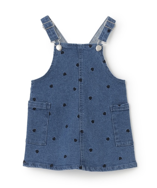 カジュアルな着こなしにマッチするサロペットスカートです。 ハートモチーフをちりばめて、愛らしい雰囲気に仕上げました。 ショルダーベルトは長さを自由に調節可能。 合わせるインナー次第で、長いシーズン着用できます。 9653592:【リンク】刺しゅうサロペSKセットアップでベビーサイズとお揃い着用ができます。 内側にお名前を記入できるタグつき。 【透け感】透けない 【生地の厚さ】普通 【伸縮性】あり 【裏地】なし 【ポケット】あり