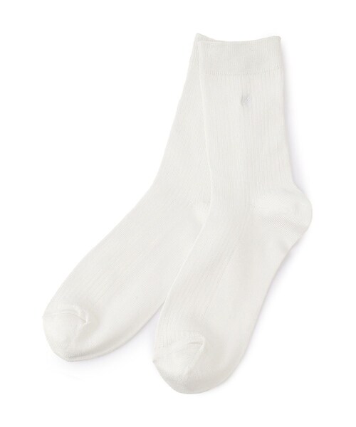 【素材感】 ・光沢があり、さらっとした生地感。 【デザイン・シルエット】 ・シンブルなロゴ刺繍入りのリブソックス。 ・さらっとした肌触りのソックスはシーズン問わずデイリーに活躍してくれる。 【カラー】 ・ブラック、ホワイト、ブラウン、シルバーの豊富な4色展開。 【スタイリングポイント】 ・ローファーと合わせたり、ミュールと合わせるのもおすすめ。 ・デニムやチノパンの裾からさりげなく覗かせると◎。 ※撮影時の光、お使いのモニター環境によって色の見え方が違う場合がございます。