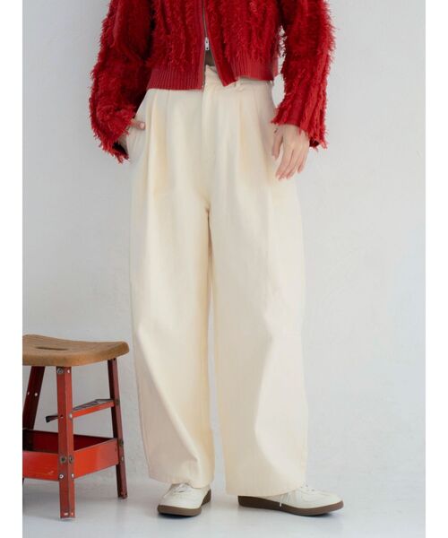 春から再入荷を繰り返していた人気のコクーンチノパンツが、冬素材にブラッシュアップして登場■デザインワイドシルエットですが、ウエストのタックと膝のダーツが立体感のあるボリューム感を演出。膝のダーツはボリューム感の中に抑揚をつけてくれるので、腰から脚のラインをきれいに魅せてくれます。ウエストにはサイドアジャスターを施しているので、絞ることができ、ベルトレスでスッキリした印象になります。■生地感冬らしい温かみのあるチノ素材を使用。少し起毛感のあるのが特徴です。■サイズ感Sサイズは155cmの方でずるっと穿いていただけるサイズ感。Mサイズは160cm代の方でシューズに少しかかるくらいの丈感です。■スタイリングショート丈やコンパクトなサイズ感のトップス合わせがおすすめ。・・・・・・・・・・・・・・・・・・・・・・透け感:なし裏地:なし伸縮性:あり光沢感:なし生地の厚さ:普通・・・・・・・・・・・・・・・・・・・・・・※商品画像はサンプルのため、色味やサイズ、素材の混率等の仕様に変更がある場合がございます。予めご了承ください。※生地寄り画像を正規の商品の色味に近づけております。■商品のお気に入り登録再入荷通知やラスト1点、お得なプライスダウンの情報も受け取ることができます。ぜひご登録ください◎