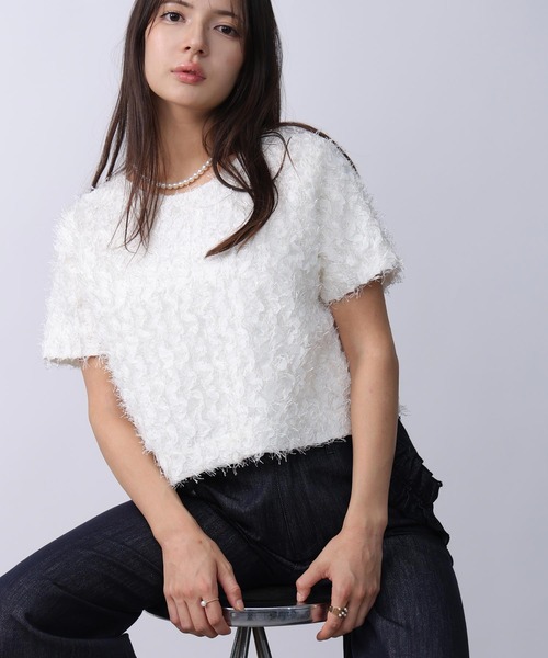 シアーテープと羽のようなフリンジが揺れるプルオーバー スタイルアップが叶うショート丈 ハイウエストボトムはもちろん、チュールインナーを合わせるのもおすすめです。 コンパクトながらも華やかな印象で シンプルコーデをブラッシュアップしてくれます。 クルーネックとVネックの前後2way仕立て コーディネートに合わせて着回せます。 ご自宅で手洗い可能なのも嬉しいポイントです。 シアー素材に裏地を付けているので透け感も気になりません。 【詳細情報】 厚み:□薄手 ■ふつう □厚手 透け感: ■なし □あり 光沢感: ■なし □あり 伸縮性: □なし ■あり 裏地: □なし ■あり ポケット:■なし □あり 重量: 約150g ※撮影場所や明るさにより 実際の商品と色味が若干異なる場合がございます。 ☆商品のお気に入り♡登録を押せば ”再入荷通知”や”残りわずか通知” 値下げのお知らせが届きます! お気に入りのブランド登録していただければ新商品入荷のお知らせも届きますので 是非登録してみて下さい。
