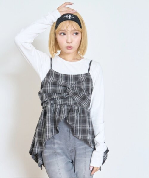 動きのあるイレヘムデザインが目を引くチェック柄のキャミソールです。大人っぽい落ち着いたカラーで、コーディネートに馴染みやすいのが魅力。肩紐は長さを調整でき、自分に合ったサイズ感で着用が可能です。長袖のインナーがついており、これ一つでレイヤード風スタイルが完成します。【透け感】透けない【生地の厚さ】普通【伸縮性】あり【裏地】なし【ポケット】なし【アジャスター】なし