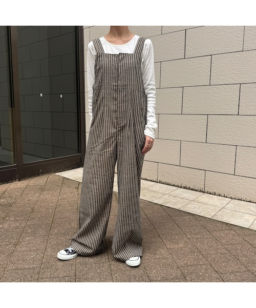 ゆるっとしたサイズ感のワークスタイルを演出してくれるオーバーオール。 ボディラインが出ない、ゆったりシルエット♪ ストライプ柄で縦のラインを強調し、スッキリ見えるのがポイント! 肩紐は、長さを自由に変えれる調整可能。 きちんと感も出してくれる、大人のきれいめアイテムです。 ※モデル身長:161㎝ ■クリックポストにて代引きをお選び頂いた方は、400円プラスさせていただき、宅配便代引きにて発送させていただきますのでご了承下さい。 ◾️カラー ブラック×ベージュ ◾️サイズ F 着丈:123cm(肩紐除く) 身幅:44cm 股下:69cm ※多少の誤差は予めご了承ください。 ◾️素材 綿35% ポリエステル65%