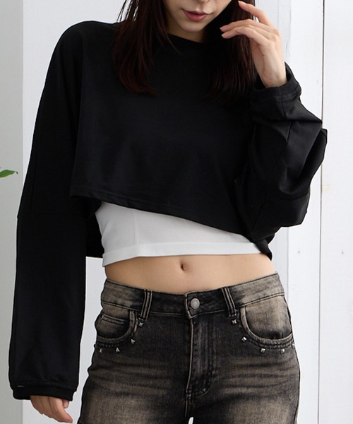 【トレンドのクロップドワイドシルエットなロンT】クロップド ワイド スリーブ ロンT / Cropped Wide Sleeves Long T- shirt / aslt