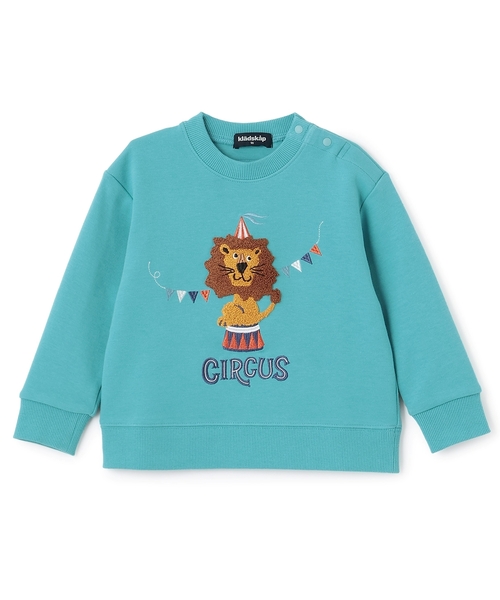シーズンテーマの「サーカス」に合わせたグラフィックトレーナーです。サーカス団員になった、ライオンさんのサガラ刺しゅうがポイント。バックネックにテントの織りネームをあしらいました。さまざまなトップスと相性が良く、デイリーに活躍する一着です。内側にお名前を記入できるタグがついています。※80、90サイズのみ肩開き【透け感】透けない【生地の厚さ】普通【伸縮性】あり【裏地】なし【ポケット】なし