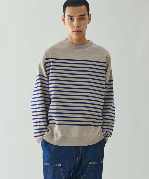 <デザイン>- パネルボーダーのプルオーバーニット- クルーネック/長袖- ゆとりのあるサイズ感- リブパーツを用いたスウェットライクなデザイン- ドロップショルダー<素材>- 表側をウール、裏側をマットな表情のポリエステルで編みたてたプレーティング- 適度なハリ感<メーカーカラーについて>WHITE系1:OYSTER×GREENGREY系1:COAL×ECRUBLACK系1:BLACK×ECRUBEIGE系1:TOP BEIGE×BLUE※海外モデルのカラーは一部展開外となっております。※着用、お取り扱いの際は商品についておりますアテンションタグ、洗濯ネームを必ずご確認ください。※モデル撮影画像は、光の当たり具合やパソコンなどの閲覧環境によって、実際の色味と異なって見える場合がございます。商品の色味は商品単体で撮影した詳細画像をご参照ください。メーカー品番:#OR-D0102 CRAORCIVAL | オーシバル1939年にフランス・リヨンで設立。1950〜60年代にはフランス海軍の制服としてボーダーTシャツを提供していた、由緒あるマリンウェア・ブランド。