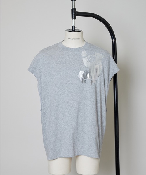 オーバーサイズのノースリーブTシャツ。生地は30/1の天竺。