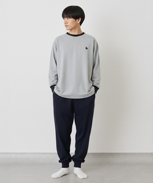 長く着用できる綿100%のスムース素材を使用したルームウエアセットです。やわらかくて着心地が良いため、おうち時間を快適に過ごせます。シンプルなカラー配色でありつつ、胸元に「G」のロゴプリント入り。パンツにはポケットがついているのもポイントです。校外学習や修学旅行など、学校行事の際にも活躍します。【透け感】透けない【生地の厚さ】普通【伸縮性】あり【裏地】なし【ポケット】あり【アジャスター】なし
