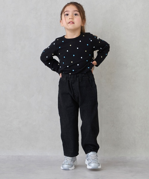 ゆったりとした着心地が魅力的なバレルパンツです。ハート型のバックポケットで可愛い印象をプラスしました。カジュアルなデニム生地で仕立てており、さまざまなトップスと好相性。ウエストはお着替えしやすい総ゴム設計です。内側にお名前を記入できるタグがついています。【おすすめの着用時期は秋冬シーズン】【透け感】透けない【生地の厚さ】普通【伸縮性】あり【裏地】なし【ポケット】あり【アジャスター】なし