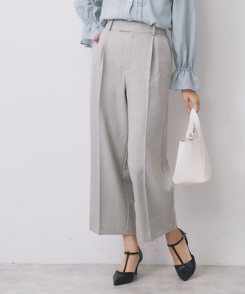 仕立て映えする表面感が魅力的なスラブツイルダワイドパンツ ※C58-44004 とセットアップとして着用いただけます。 【デザイン】 ・ワイドストレートシルエットが、脚をまっすぐ美しく見せる効果を発揮。 動きやすさとスタイルアップを両立したデザインです。 ・センタープレスが施されており、きちんと感をプラス。 オフィスやフォーマルなシーンでも活躍する上品な仕上がりです。 ・ややハイウエストのデザインが腰位置を高く見せ、脚長効果を演出。 トップスをタックインすることで、さらにスタイルアップが叶います。 ・シンプルながらもスラブツイルの表面感がニュアンスを生み出し、無地ながらも奥行きのある印象に。 ・同素材のジャケットとセットアップで着用すれば、統一感のある洗練されたスタイルが完成。 単品使いでも幅広いコーディネートに対応します。 【素材】 ・リサイクルポリエステルを使用したサステナブルな素材で、環境に配慮した選択をサポート。 ・スラブツイルの表面感が、シンプルなデザインにさりげないニュアンスをプラス。 良質で洗練された印象を与えます。 ・ウォッシャブル仕様で、自宅で簡単にお手入れ可能。 忙しい日々でも清潔感をキープできる実用性の高さが魅力です。 ・イージーケア機能付きで、アイロンがけの手間を軽減。 ・軽やかでしなやかな素材感が、快適な着心地を提供。 長時間の着用でもリラクシーに過ごせます。 【仕様】 ・ポケット数:横×2 後ろ飾りポケット×2 ・前ファスナー ・ウエスト後ろゴム ・裏地なし ※こちらの商品はやや透け感があるため、インナーの着用をおすすめします。 ※照明の関係により、実際よりも色味が違って見える場合があります。また、パソコン・スマートフォンなどの環境により、若干製品と画像のカラーが異なる場合もございます。 モデル情報:身長166cm 着用サイズ:38(M) 店舗へのお問い合わせ商品番号:C58-64009 ●製品寸法: 36(S):W64~66cm H86cm 股下62cm 前股上30cm 渡り幅25cm 裾幅24cm 38(M):W67~69cm H87cm 股下64cm 前股上31cm 渡り幅25cm 裾幅24cm 40(L):W70~72cm H88cm 股下66cm 前股上31cm 渡り幅26cm 裾幅25cm 42(LL):W72~74cm H90cm 股下67cm 前股上32cm 渡り幅26cm 裾幅25cm 備考: