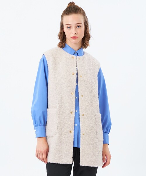 <愛らしいブークレージレ>ウールブークレー素材を使用したHESSLEジレは、さらっと軽く羽織れてスタイリングのアクセントとして長い時期活躍するアイテムです。ワンピース、スカート、パンツ、どのアイテムともバランス良く着こなせる丈バランスです。ブークレー素材の上質な素材のジレは、高級感のあるきちんと見えな表情で、大人も着られるトレンドアイテムに仕上がっています。【素材】ローゲージで編んだ、軽さと暖かさが特徴のブークレ素材。生地に膨らみの出る編み方で立体的な表面を実現し、表情のあるファブリックに仕上げました。おすすめ着用期間:秋/冬※36サイズはオンラインストア、ルミネ新宿店、柏高島屋ステーションモール店、ジェイアール名古屋タカシマヤ店、山形屋店、博多阪急、阪神梅田本店のみでのお取扱いになります。※サイズについては、仕様書のサイズを記載しており、多少の誤差が出る場合がございます。※この商品はサンプルでの撮影を行っています。実際の商品とイメージ、仕様が異なる場合がございます。