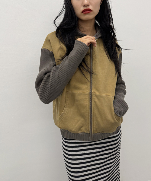 【2025 AW】Oriens JOURNAL STANDARDビンテージ感のある裏毛スウェットとリブニットがドッキングされた、羽織りとしてお使い頂けるフーディー。しっかりとした素材なにで、ブルゾンのような役割をしてくれるアイテム。古着のような雰囲気の染め加工は拘りポイント。様々なボトムに合わせやすい腰で止まるくらいの丈感は、着回ししやすさ抜群。冬はアウターの中にも着れて、防寒にも使える1着です。**********************透け感:なし裏地:なし伸縮性:ややあり光沢感:なし生地の厚さ:普通**********************<気になったアイテムは『お気に入り』がおすすめです!>お気に入り登録した商品の再入荷・在庫情報・値下げなどの通知を受け取ることができます。<Oriens JOURNAL STANDARD 公式Instagramで最新情報をご覧くださいませ!>※取り扱いについては、商品についている品質表示でご確認ください。※照明の関係により、実際よりも色味が違って見える場合があります。またパソコン・スマートフォンなどの環境により、若干製品と画像のカラーが異なる場合もございます。※商品の色味は、商品アップ画像をご参照ください。詳細着用スタッフ:H163 着用サイズ:FREE本体:手洗い可能