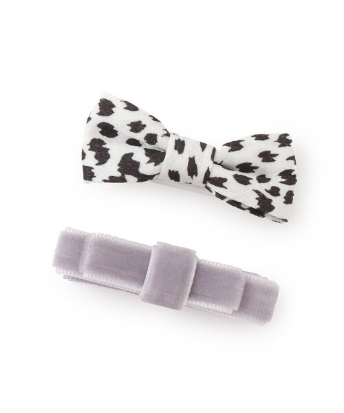 女の子らしさあふれるリボンデザインのヘアクリップです。個性的な総柄と上品なベロア素材の2個セット。金具部分をテープで巻いており、お肌が傷つくのを防ぎます。程よいサイズ感で普段使いしやすく、さまざまなヘアアレンジを楽しめるアイテムです。
