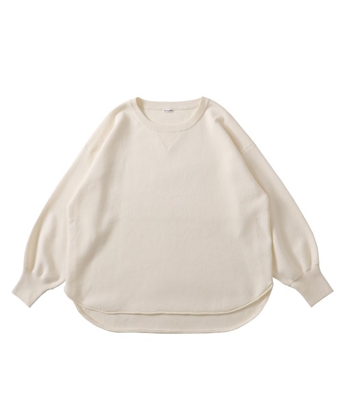 ■DESIGN スウェットのカジュアルさをベースに、ニットで仕立てることで上品さをプラスしたプルオーバー。 程よいハリと柔らかな風合いに加え、カシミヤをブレンドしたリッチな質感が魅力。 ホワイトのクルーネックTをインナーに合わせ、襟や裾からさりげなく覗かせるスタイリングがおすすめです。 --------------------------- 透け感:なし 裏地:なし 伸縮性:あり ケア方法:手洗い可 ※お洗濯の際は洗濯表示を必ずご確認ください。 ---------------------------