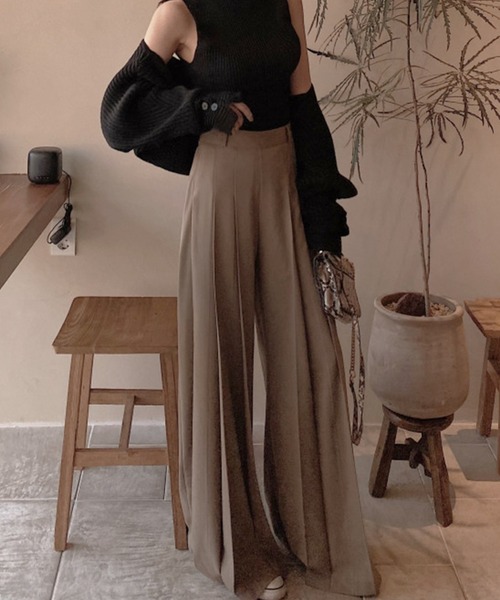 シーンを選ばず使える、大人のきれいめパンツ■デザイン・フロントに2タックを施した、立体感のあるフレアスラックス・裾にかけて自然に広がるシルエットで、美脚効果を演出・タックが腰回りにゆとりを与えつつ、きれいめな印象をキープ・シンプルながらもシルエットで差がつく、大人スタイルにぴったりの一本■素材・コットン×ポリエステル素材で、軽やかで扱いやすい質感・程よいハリ感と落ち感があり、シルエットをきれいにキープ・シーズンレスに使いやすく、デイリーからオフィスまで活躍■スタイリング・シャツやブラウスを合わせてオフィスライクに・Tシャツやニットと合わせれば、大人カジュアルなスタイルに・ジャケットを羽織ってセットアップ風にすれば、きちんと感のあるコーデが完成・ヒールやローファーでクラシカルに、スニーカーで抜け感をプラスしても◎-----------------------------透け感:ホワイトややあり伸縮性:なし裏地:なし------------------------------------------------------------【スタッフが着用しました!】身長:153cm普段着用サイズ:S~Mサイズ今回着用サイズ:Mサイズ■着用感・ウエスト周りはタック入りで快適なはき心地・フレアラインが脚をすらっと長く見せてくれるシルエット・動きやすさときちんと感を兼ね備えた、ストレスフリーな一本・2サイズ展開で、自分に合ったフィット感を選べるのも嬉しいポイント------------------------------------------------【お買い物をよりお楽しみいただく為に】▼お気に入り登録サイズ・カラーを指定して、♡マークをクリック![セール通知・ラスト1点の通知・完売アイテムの再入荷通知]を受け取ることができます。▼ブランドのお気に入り登録新商品や再入荷、タイムセールやクーポン等いち早くブランドのお得な情報を受け取ることができます。------------------------------------------------※取り扱い上のご注意染色の特性上、発汗や摩擦により色落ちしたり他のものに色移りすることがありますのでご注意ください。韓国 オフィスカジュアルガーリー大人カジュアル韓国ファッション秋服