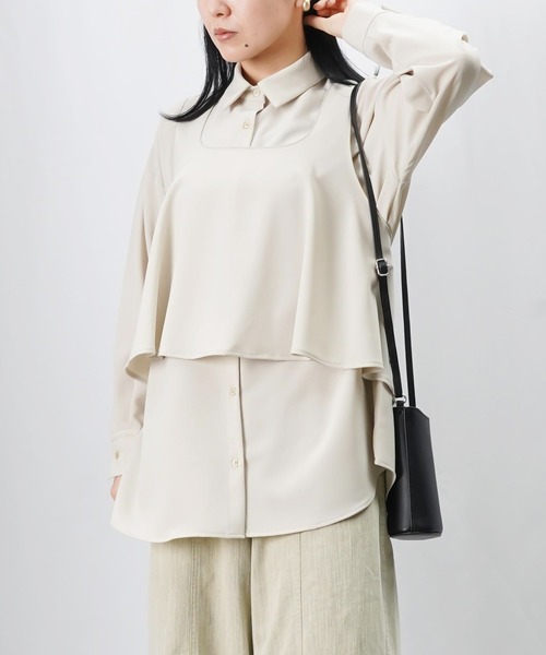 2025 Autumn & Winter【ビスチェがトレンドライクなトップス】◆Designシャツと同素材のビスチェをドッキングしたトレンドライクなトップス。ビスチェは胸下まわりをカバーできるフレアーシルエットで、後ろはリボンベルトで調節も可能です。落ち感のあるきれいめ素材でオンオフ兼用で着られ、大人かわいいスタイリングが叶います。◆Fabric・落ち感のあるサラッとした素材◆color・ライトベージュ、ブラックの2色展開です。◆Styling・タイトスカートにパンプスを合わせてきれいめコーデに。・テーパードパンツやスラックスを合わせてオフィスコーデに。・デニムやイージーパンツを合わせてカジュアルに。--------------------------------生地の厚さ:中間透け感:なし伸縮性:あり光沢感:あり裏地:なし洗濯:手洗い可--------------------------------【お買い物をよりお楽しみいただくために】〇商品のお気に入り登録完売カラーの再入荷や、完売間近の通知、セールの通知を受けることができます。〇ブランドのお気に入り登録新商品や再入荷など、いち早くブランドのお得な情報を受け取ることができます。【♡をクリック!ご登録お願いします!】