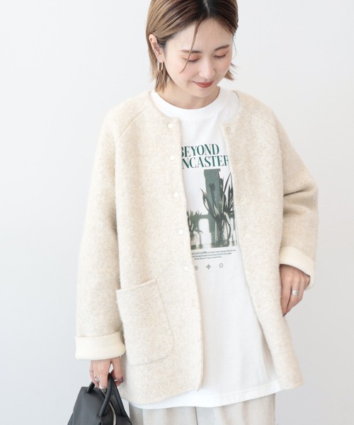 やわらかなタッチが魅力のミドル丈コーディガンデザイン■ゆとりのあるサイズ感で、ヒップラインをすっぽりと隠してくれる着丈。■スウェットのような厚みがあるトップスの上からでも快適に羽織ることができます。■大きめポケットが付いており、ゆったりとしたフォルムがスタイリングのアクセントに。■少しのおでかけにもさっと羽織れ、車での移動時にもおすすめ、アウターとしても活用できます。■オフィスからデイリーまで幅広く活用でき、さまざまなコーデにも取り入れやすいアイテムです。素材■軽くて暖かく、適度な厚みとハリを兼ね備えた素材。■内側は合繊繊維で編み立てているため、インナーに糸が付きにくい仕様。■フロントにはドットボタンを採用し、よりコートのような上品なデザインに仕上げました。※コーディガンとは…「コート」と「カーディガン」を組み合わせた造語で、カーディガンよりやや厚手で丈が長めになった、季節の変わり目に便利なライトアウターです。【お洗濯について】・液温は40℃を限度とし、手洗いが可能です。・塩素系及び酸素系漂白剤の使用はできません。・タンブル乾燥はできません。・日陰で平干ししてください。・アイロンは底面温度110℃を限度として使用してください。・ドライクリーニングは可能です。(溶剤は石油系を使用してください)どんなコーデにも合わせやすく、オフィスにもお出かけにもぴったりの上品な一着です。※モデル着用画像は、光の当たり具合で色味が違って見える場合がございます。商品の色味は、物撮りの画像をご参照ください。●AMERICAN HOLIC ● (アメリカンホリック)大人の女性の毎日を軽やかで豊かにするブランド。カジュアルなのにオシャレ、コーディネートも楽。ONにもOFFにも等身大で楽しむオトナの日常着をテーマに、スタイリッシュかつ自然体を楽しめるカジュアルスタイルを提案します。 ▼ 商品のお気に入り登録がおすすめです ▼商品ページ内のハートマークをクリック。完売時の再入荷や、最後の1点の通知、お得なお値下げの際の通知を受ける事ができます。【お知らせ】ページでも通知が確認できます。