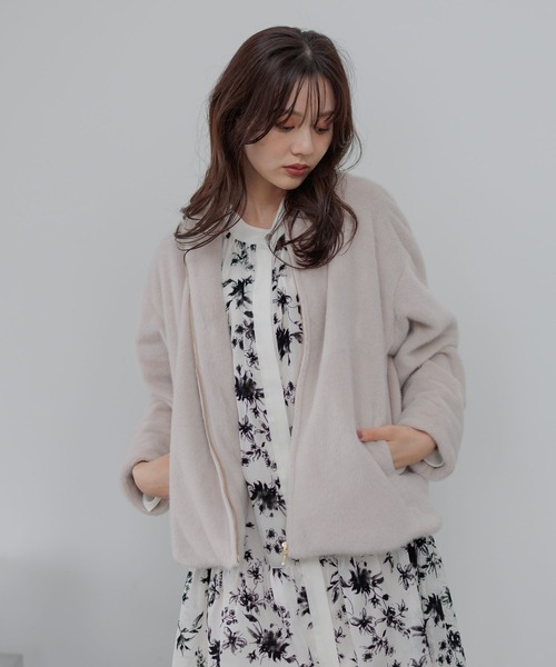 ふわふわのファーで魅せる 素材をいかしすためデザインを引き算した、フロントファスナーのノーカラーファーブルゾン。 纏うだけで気分があがるようなゴージャス感がポイント。 人と会う場面やレストラン、劇場などにも映え特別感のあるアイテムです。 デザイン / コーディネート ・抜いて羽織るだけで決まる。 ・トレンド感のあるややオーバーサイズ。 ・ボリューミーな見ために反し着用するとすっきり。 ・丸みのある女性らしいフォルム。 ・ワンピースの羽織りは王道。 ・パンツスタイルも大人っぽく好相性。 ・カジュアルコーデに加えればしゃれ感UP 素材 / お手入れ方法 ・高級感のあるフェイクファー。 ・軽く柔らかく暖かい。 ・ドロップショルダーがリラクシー。 ・金属ファスナーで女性らしさをプラス。 ・ドライクリーニング。 ・裏地あり。 ※屋内外の光や照明の当たり具合で、実際の商品の色味とカラー別画像の色味に違いが発生する場合がございます。色味はスタジオ撮影の詳細画像にてご確認ください。 ※生地の寄り画像が最も実物に近い色味となります。 ーーーーーーーーーーーーーーーーーーーーーーー ▼ 商品のお気に入り登録 ▼ 完売カラーの再入荷通知や、ラスト1点の通知、 クーポン開始、セールの通知も受け取ることができます。 ▼ ブランドのお気に入り登録 ▼ 新商品や再入荷など、 ブランドのお得な情報をいち早くお知らせ! ぜひご登録ください!