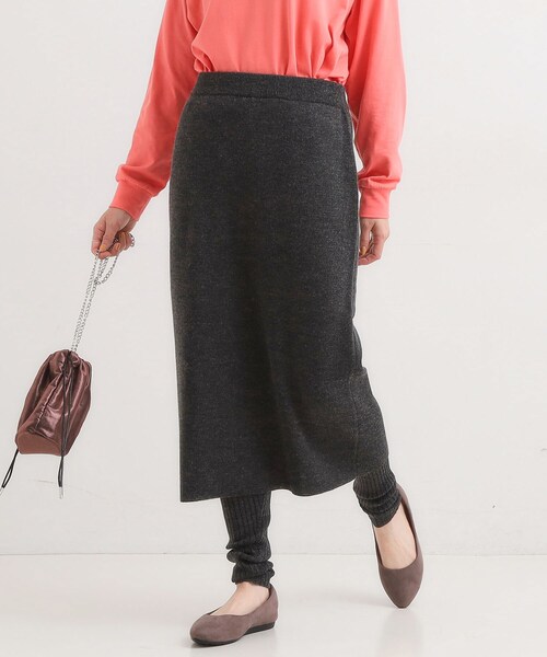 【デザイン】サッとはくだけでおしゃれスタイルが決まる、リブレギンスつきナロースカート。ニット素材で伸縮性があり、ぴたぴたしすぎないシルエットをキープしているので、体型カバーにもおすすめのアイテムです。ウエスト部分でスカートとレギンスがドッキングされているので、着崩れることなく、安心して着用いただけます。【スタイリング】ボトム部分がすっきりしているので、ゆるトップスが今っぽくバランスよく着ていただけます。おすすめはデニムシャツ。きるだけでおしゃれに。ロゴスウェットやTシャツなら大人カジュアルに。チェックシャツや柄ニットなども大人かわいいコーデが完成します。足首まわりにクシュクシュがたまるので、靴はフラットパンプスやスニーカー合わせがおすすめです。【素材】軽量でありながら温かみあるアクリル糸で編み立てています。【仕様】・ポケットなし・裏地なし・ウエスト総ゴム※照明の関係により、実際よりも色味が違って見える場合があります。また、パソコン・スマートフォンなどの環境により、若干製品と画像のカラーが異なる場合もございます。モデル情報:身長163cm B81 W59 H88 着用サイズ:00(FREE)店舗へのお問い合わせ商品番号:C62-74001●製品寸法:00(FREE):W70~74cm H78cm 股下78cm 前股上31cm 渡り幅20cm 裾幅8cm スカート総丈76cm備考: