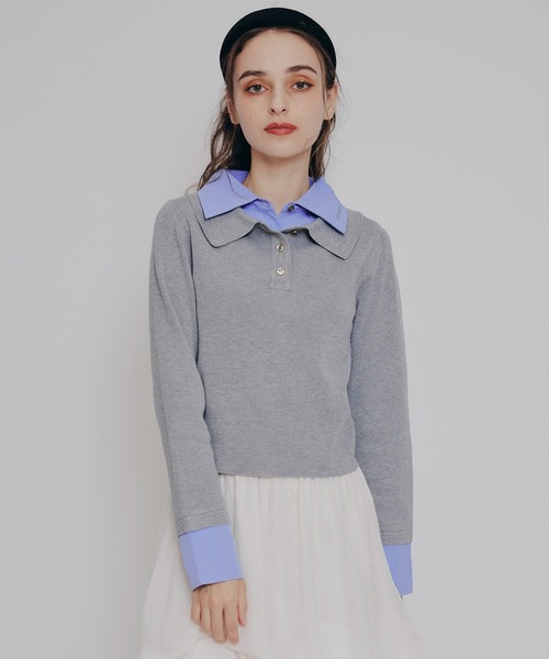 大好評につき、新色ボルドー&グレー登場!存在感のあるダブルカラーと異素材ドッキングが目を惹く、レイヤードニット。シャツライクな襟とカフスをニットに組み合わせることで、1枚でこなれた重ね着スタイルが完成。襟元のさりげない刺繍がクラシカルで上品な印象を添え、顔まわりを華やかに引き立てます。コンパクトなシルエットで女性らしいバランスを演出しつつ、 モード感のあるデザインでコーディネートを格上げします。パンツにもスカートにも合わせやすく、オフィスからデイリーまで幅広く活躍してくれる 万能トップスです。透け感:なし裏地:なし伸縮性:あり生地の厚さ:普通F:着丈48cm 身幅38cm 肩幅33cm 袖丈52cm