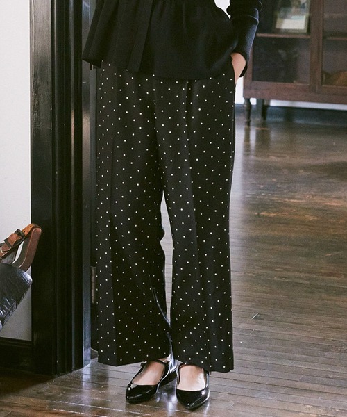 トレンドのドット柄パンツが登場◎シンプルなトップスと合わせるだけで、こなれ感のあるスタイルが完成。ウエストはゴム仕様で、締め付け感ゼロ。ゆったりとしたシルエットで動きやすさ抜群です。きちんと感があるデザインとシルエットなので、お仕事や休日にも使える万能なアイテム◎※モデル着用画像は光の当たり具合で色味が違って見える場合がございます。商品の色味は物撮りの画像をご参照ください。● earth music&ecology ●(アースミュージック&エコロジー)「いいことある服。」たかが服。されど服。波風の多い日々のなかでもほほえんで前を向くあなたを、つつんで一緒に歩きたい。 いいことあるかも。そんな期待までまとえる服をあなたに。earth music&ecologyは、毎日を頑張る女性たちをちょっと前向きにするブランドです。 ▼ 商品のお気に入り登録がおすすめです ▼商品ページ内の「♡」ハートマークをクリック。完売時の再入荷や、最後の1点の通知、コーディネート画像がアップされたとき、お得なお値下げの際の通知を受ける事ができます。【お知らせ】ページでも通知が確認できます。