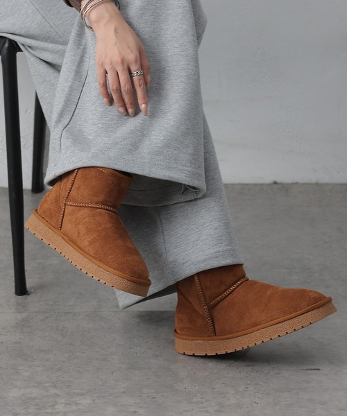 【毎日履きたい快適リラックスムートン】寒い季節の足元を暖かく包み込む、ムートンブーツが登場。オフィスでの仕事、ちょっとしたお出かけ、近所への買い物など、どんなシーンでも合わせやすいシンプルなデザインが魅力。内側のふかふかの素材が足を優しく包み込み、まるで雲の上を歩いているかのような心地よさです。脱ぎ履きしやすい丈感で、快適な履き心地を実現。長時間履いても疲れにくく、忙しい一日を足元からサポートします。シンプルで洗練されたデザインはカジュアルなスタイルにはもちろん、きれいめなコーディネートにも合わせやすいのが魅力です。自分へのご褒美としてはもちろん、大切な人へのギフトにも最適です。暖かさはもちろん、おしゃれも妥協したくないあなたにおすすめです。この冬、ヘビロテ間違いなしの、頼れる相棒のような1点。【商品ポイント】・足を入れた瞬間から暖かい、ふわふわのボア・長時間履いても疲れにくい・脱ぎ履きしやすい丈感で、ちょっとしたお出かけにも便利・合わせやすいシンプルなデザイン・大切な人へのプレゼントとしてもおすすめ【素材についてのご注意】こちらの商品は、スエード風のやわらかい風合いをいかした素材を使用しています。素材の特性上、摩擦や汗・雨などで濡れた状態では、まれに色落ち・色移りが起こる場合がございます。特に、白や淡いカラーのお洋服・バッグと合わせる際は、ご使用の環境にご注意いただけますと安心です。気になる場合は、ご着用前に目立たない部分で軽くこすっていただき、色移りがないかご確認ください。----------------------------------------------------■素材甲材: 合成繊維底材: 合成底----------------------------------------------------※着用、お取り扱いの際は、商品についている品質表示とアテンションタグを必ずご確認下さい。※商品タグに記載されている商品名がWEBでの表記名と異なる場合があります。※実際の商品と仕様、加工、サイズが若干異なる場合がございます。※照明の関係により、実際よりもやや明るく見える場合がございます。またパソコンなどの環境により、若干製品と画像のカラーが異なる場合もございます。予めご了承くださいませ。【お気に入り登録】してお得な情報をCHECK!!・「商品のお気に入り登録」で再入荷通知や、ラストの通知、セール通知も受け取ることができます。・「ブランドのお気に入り登録」で新商品や再入荷など、お得な情報を受け取ることができます。