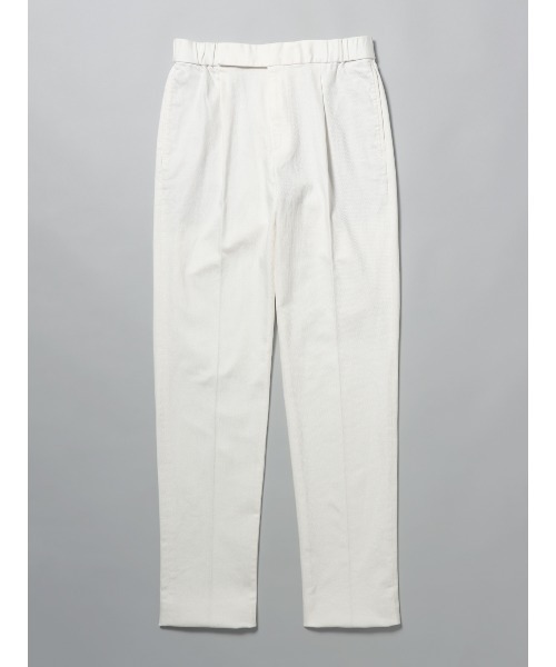 GOOVI(グービ) ファッションディレクター高田朋佳氏監修、新時代のドレスカジュアル。 性別・体型・年齢・スタイルなどのあらゆる垣根を越えて、あなただけの特別な着こなしを提案。 『GOOVI』オリジナルの日本産素材《遠州産地》、ナチュラルなムラ感ある10オンスのカツラギを使用したテーパードパンツ。 ・オーガニックコットンを原料としたカツラギは、デニムよりも柔らかく肌当たり優しい生地 ・リサイクル原料のポリウレタン混でストレッチ性を確保 ・着る人の個性を活かす自然なエレガンスを追求した1プリーツテーパードモデル ・10cm以上のウエスト調整幅を持ちながら、自然な見えがかりにこだわったシャーリング仕様 ・飽きの来ないオーセンティックなデザインと、国産の上質素材を採用することで、永く愛用できるサステナブルな1着 【仕様】ワンタック/テーパード/ウエスト:ゴム/ドローコード 【洗濯表示】ドライクリーニング・家庭洗濯可《洗濯機可(ネット使用・弱水流)》 【1(S~M)】ウエスト仕上がりサイズ74.0cm ヒップ107.0cm 股上26.5cm 股下90.0cm ワタリ幅33.2cm ヒザ幅23.5cm 裾幅18.5cm 【2(M~L)】ウエスト仕上がりサイズ77.0cm ヒップ110.0cm 股上27.0cm 股下90.0cm ワタリ幅34.0cm ヒザ幅24.0cm 裾幅19.0cm 【3(L~LL)】ウエスト仕上がりサイズ80.0cm ヒップ114.0cm 股上27.5cm 股下90.0cm ワタリ幅34.8cm ヒザ幅24.5cm 裾幅19.5cm 《()内の表記は目安となります。商品特性上、お好みのサイズ感でご着用いただけますため、参考程度にご覧下さい。》 【おすすめシーン】 お出かけ、ショッピング ビジネス、オフィスカジュアル 演奏会、発表会、参観日などの学校行事 ※商品の仕上がりサイズ(出来上がり寸法)は上記のサイズ表をご覧下さい。 ※お届けする商品の下げ札・タグに記載の数値は目安としてのヌードサイズ(体の寸法)のため上記表示と異なる場合がありますが、誤表記ではございません。 ※同サイズまたは同一商品でも、生産の過程で1.0cm~2.0cm程度の個体差や着用感の違いが生じる場合がございます。 ※カラー名は管理用の表記となります。実際の商品の色味は商品画像をご確認ください。 ※商品画像はできる限り実際の色に近づけて掲載しておりますが、パソコン環境により色味に誤差が生じる場合がございます。予めご了承下さいませ。