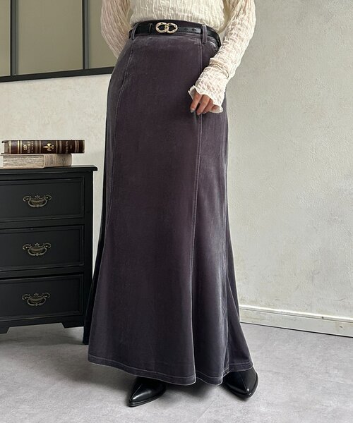 【2025AW】 \人気のIラインマーメイドスカートにベロアver登場!/ コーデのワンポイントに!きれいめ映えスカート 静電気防止加工&抗菌防臭加工付き! ※静電気防止・抗菌防臭加工は使用やお手入れを重ねるごとに効果が徐々に薄れてしまう恐れがあるため 効果を長く保つには、洗濯やクリーニングの回数をなるべく減らすことをおすすめします◎ 【POINT】 ・ベロア素材で質感のある光沢を ・マーメイドラインでスタイルアップ効果も◎ ・季節感のあるスタイルが叶うアイテム ・カジュアルにもきれいめにも合わせやすい ・静電気防止・抗菌防臭加工付き 【STYLING】 ・ざっくりニットと合わせて、抜け感のある大人カジュアルスタイルに。 足元はブーツでトレンド感をプラスするのがおすすめです。 ・ブラウスと合わせて、おでかけやオフィスにも対応できるきちんと スタイルには、アクセサリーで華やかさを添えてワンポイントに! 【アフターケア】 ・洗濯不可 ・漂白不可 ・タンブル乾燥処理不可 ・アイロン不可 ・ドライ、ウェットクリーニング可 ---------------------------------------------- 透け感:なし 裏地:あり(アイボリーのみ) 伸縮性:あり 光沢感:あり ---------------------------------------------- ※商品画像は着用イメージです。 光や角度により、実物と色味が異なる場合がございます。 また表示のサイズ感も実物とは若干異なる場合もございますので、 ご了承ください。 ※着用、お取り扱いの際は、商品についている品質表示と アテンションタグを必ずご確認ください。 ---------------------------------------------- 【Thevon】 自分を魅せる「ニュアンスファッション」 オトメからオトナに向かう女性へ旬なアイテムを提案 ---------------------------------------------- 気になるアイテムは【お気に入り登録】がおすすめ! ▽商品のお気に入り登録 完売カラーの再入荷やラスト1点の通知などを受け取ることができます。 ▽PALCLOSETでブランドをお気に入り登録 新商品やクーポン、セール情報をいち早く受け取ることができます。