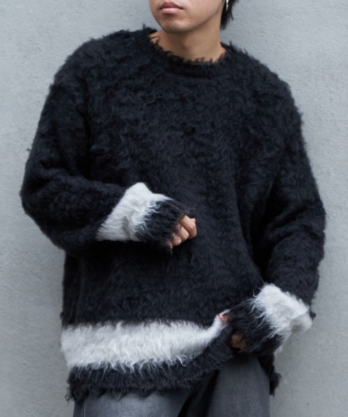 【ふんわりとした質感と程よいゆるさが魅力のシャギーモヘアニットクルー】 表面を起毛加工し、ふんわりとした肌触りが特徴のシャギーニットです。 裾と袖部分のバイカラーのラインがアクセントになっています。 ゆるっとした丈感でストレスフリーな着心地が魅力です◎ 程よいゆるさもありながらクルーネックでバランスよく合わせられて、1枚でアクセントになる主役級のニットプルオーバーです。 カジュアルなデニムスタイルにはもちろん、ワイドスラックスやレザーシューズとの合わせでモダンな大人の装いにもマッチします。 【商品ポイント】 ・ゆとりのあるシルエット ・袖と裾のラインがアクセントに ・ふんわりとした質感 ---------------------------------------------------- ■商品特徴 洗 濯 方 法 :手洗い可 裏 地 :なし 透 け 感 :なし 伸 縮 性 :あり 光 沢 感 :なし 生地の厚さ:普通 ---------------------------------------------------- ■素材 ポリエステル100% ---------------------------------------------------- ※着用、お取り扱いの際は、商品についている品質表示とアテンションタグを必ずご確認下さい。 ※商品タグに記載されている商品名がWEBでの表記名と異なる場合があります。 ※実際の商品と仕様、加工、サイズが若干異なる場合がございます。 ※照明の関係により、実際よりもやや明るく見える場合がございます。 またパソコンなどの環境により、若干製品と画像のカラーが異なる場合もございます。予めご了承くださいませ。 【お気に入り登録】してお得な情報をCHECK!! ・「商品のお気に入り登録」で再入荷通知や、ラストの通知、セール通知も受け取ることができます。 ・「ブランドのお気に入り登録」で新商品や再入荷など、お得な情報を受け取ることができます。