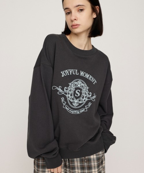 ■POINT:フロントに大きくあしらわれたロゴが印象的なクルーネックのスウェット。程よい厚みの裏毛素材を使用しているのでロングシーズンで着用していただけるアイテムです。■DETAIL:程よいゆとりのあるシルエットが着回しのしやすいサイズ感のスウェット。刺繍で施されたロゴが、カジュアルさの中にも上品な印象をプラス。それぞれのボディカラーに合わせた刺繍カラーにもこだわりました。ベーシックなシルエットながらも1枚でこなれたスタイリングを完成させます。■STYLING:スウェットパンツやデニムと合わせたストリートカジュアルなスタイリングはもちろん、ミニ丈のボトムスやスカートと合わせたガーリーなスタイリングもおすすめです。■FABRIC/MATERIAL:程よい厚みの裏毛素材を使用。■透け感:なし■光沢感:なし■伸縮性:なし■裏 地:なし本品は素材の特性上色落ちします。洗濯、クリーニング、着用(使用)時に他の衣類や雑貨、家具類に色移りする事があります。特に汗や雨等で湿った状態では、色落ちが顕著になります。白、淡色との組み合わせは避け、お取り扱いには十分ご注意下さい。[注意事項]※画像の商品はサンプルです。実際の商品と仕様、加工が若干異なる場合があります。※画像の商品は光の照射や角度、お使いのモニター環境により、実物と色味が異なる場合がございます。※着用、お取り扱いの際は、アテンションタグをご確認ください。※一部予約商品につきましては生産上の都合によりお届け予定日や店頭発売と前後する場合もございます。※追加生産商品は、一部の店舗、通販で販売中の場合がございます。予めご了承下さい。【SLY/スライ】「Casual」「Girly」「Mode」をベースに発信する、ディテールへのこだわりが詰まった、どこか必ず女性らしさを感じるアーバンスタイル。 さまざまなエッセンスをミックスした、時代の空気を体現するコレクションを展開。 ▼商品のお気に入り登録 お気に入りアイテムの値下げ・再入荷・在庫5点などの通知を受け取ることができます。 ▼ブランドのお気に入り 登録新商品や再入荷、セール、クーポン配布などお得な情報を受け取ることができます。