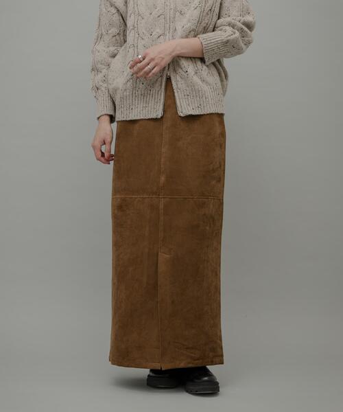 シーズンムードを高めるスウェード素材のスカート トレンドでもあるスウェード素材を使用し、ナローシルエットに仕上げたスカート。 Iラインシルエットとベルトレスなデザインですっきとした印象ながら、後ろゴムとストレッチの効く素材でストレスフリーな着心地です。 切替えやステッチを効かせたデザインで、シンプルながらも高見えするデザインに。 裾はベンツ仕様を採用することで、歩きやすさは保ちつつ足元に抜け感を演出。 体のラインを拾わず、尚且つハリすぎない程よい肉感の生地を使用し、秋口~春まで長く使えるスカートに仕上げました。 POINT ・選べる2サイズ展開 ・トレンドのスエードライク素材 ・オンオフ兼用で活躍◎ ・洗濯機でのお洗濯が可能 COORDINATE どんなトップスとも合わせやすいデザインで、Tシャツからニットまで長くお召しいただけます。スウェットとのカジュアルなスタイリングやフェザーニットを合わせたフェミニンなスタイリングなど、合わせるアイテムによって違った印象で楽しめます。 【2030 Autumn/Winter】【25AW】 ※この商品は、素材感と雰囲気を重視し、非常に柔らかい風合いの生地を使用しています。激しい運動や強い力がかかると、滑脱したり目寄れすることがありますのでご着用の際はご注意ください。 ※その他お取り扱いに関しましては、商品に付属のアテンションタグをご覧ください。 ※商品画像は、光の当たり具合やパソコンなどの閲覧環境により、実際の色味と異なって見える場合がございます。予めご了承ください。 ※商品の色味の目安は、商品単体の画像をご参照ください。 ▼お気に入り登録のおすすめ▼ お気に入り登録された商品は、マイページにて現在の価格情報や在庫状況の確認が可能です。 お買い物リストの管理にぜひご利用ください。 素材感 透け感 : なし 伸縮性 : あり 裏地 : なし 光沢 : なし ポケット : なし 3836