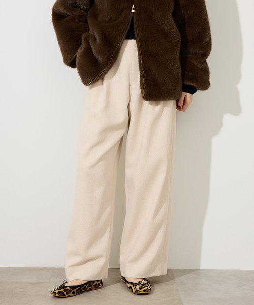 36.38サイズ展開/シリーズあり/洗濯機使用可能【2025AW】SLOBE IENAPOINT・きちんと見えの叶うツイード素材を使用した秋冬ムードが出せるスラックス!【素材の特徴】ON・OFF着方によって対応できるようなツイード素材。生地の柄は細かめなので、スタイリングしやすさも◎。洗濯機で洗えて便利なパンツです。【デザイン】タックが入っているので腰回りをカバー◎。後ろゴムできちんと見えは叶いつつ、楽で過ごしやすい履き心地に。ポケット付きながら、ストレートの着やすいシルエットの良さが特徴です。大人きれいめスタイルに欠かせないパンツです。【コーディネート】秋冬シーズン通して着回しの効くスラックス。シャツやジャケットなどオフィススタイルにも◎。タックがあるので、ウエストインもきれいに着こなせます。ブーツ、スニーカーまで様々なコーデを楽しめるスラックスですシリーズでスカート(品番25060912406040)もございます。**********************透け感:なし裏地:あり伸縮性:なし光沢感:なし生地の厚さ:普通**********************《スタッフ名:Sally》年齢:30代後半/身長:162cm/体型:細身/普段サイズ:M/着用サイズ:38サイズ感:くるぶしが隠れるくらいの着丈。全体的に程よいゆとりがありますが、きちんと感ある見え感です。素材感: キレイ見えするツィード素材。柔らかさがあり、女性らしく着れます。着心地:裏地付きなので安心感があります。ウエストは後ろゴム仕様で楽ちんです。**********************※取り扱いについては、商品についている品質表示でご確認ください。こちらの商品は、SLOBE IENAでの取り扱いになります。直接店舗へお問い合わせの際はSLOBE IENA店舗へお願い致します。※照明の関係により、実際よりも色味が違って見える場合があります。またパソコン・スマートフォンなどの環境により、若干製品と画像のカラーが異なる場合もございます。予めご了承ください。※商品の色味は、商品アップ画像をご参照ください。本体:洗濯機洗い(弱)