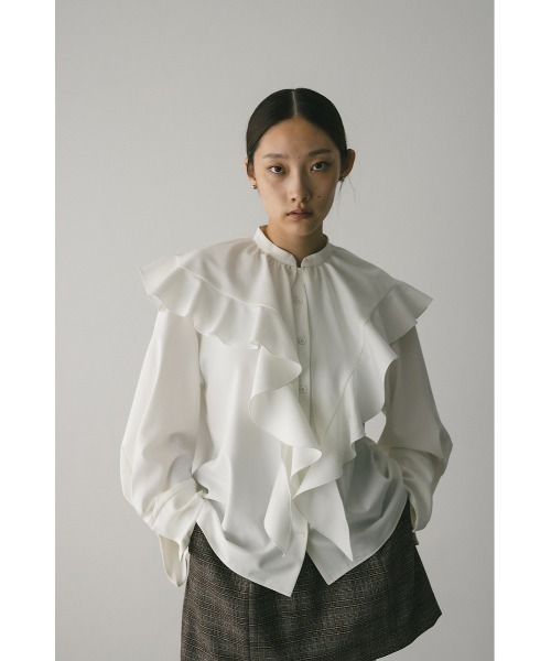 甘くなりすぎないようにスカーフヘムのようなフリルデザインに仕上げたブラウス。フリルはそのまま垂らしても、フロントで片結びしても可愛く決まります。抜け感のあるサイジングやワイドカフにこだわった一枚です。透け感なし、ストレッチややあり。■素材・洗濯表示【素材】ポリエステル95% ポリウレタン5%【お手入れ方法】マシンウォッシュ可毎週スタッフ着用による新作紹介インスタライブ配信中。詳しくはブランドのInstagramをチェックしてください。_____________________STYLEMIXER/スタイルミキサー/スタミキコンセプトは「I STYLE MYSELF」「HIGH DESIGN LOW PRICE」を軸に、トレンドのアイテムからベーシックなアイテムまで他にないこだわりが見える高感度アイテムを展開。高見えするデザインが揃い、お客様の今欲しいものを提供します。ハイブランドからファストファッションまで、ジャンルを問わず様々なファッションと融合でき、お客様がセルフコーディネートできるアイテムを提案します。※掲載画像はサンプルの為、光の照射や屋外など環境により実物と色味が異なる場合がございます。サイズや素材が若干異なる場合がございますので、予めご了承ください。_____________________▼商品のお気に入り登録お気に入りアイテムの値下げ・再入荷・在庫1点などの通知を受け取ることができます。▼ブランドのお気に入り登録新商品や再入荷、セール、クーポン配布などお得な情報を受け取ることができます。