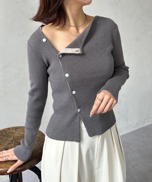 【2025AW】 きれい見えが叶う主役級ニット 【POINT】 ・デコルテラインが綺麗に見えるアシメネック ・ボタンデザインがこなれ感を演出 ・伸縮性があり身体にフィットするリブニット ・1つ目のボタンを開けて着るのも◎ 【STYLING】 ・ワイドデニムでゆるっとカジュアルに、スラックスできれいめに、 スカート合わせでフェミニンにも合わせられる万能トップスです! ・1つ目のボタンを開けると配色デザインが見えてよりこなれた印象かつ 程よい肌見せで女性らしさを演出。お好みのスタイルに合わせて 着用していただけます◎ 【アフターケア】 ・手洗い可 ---------------------------------------------- 透け感:なし 裏地:なし 伸縮性:あり 光沢感:なし ---------------------------------------------- ※商品画像は着用イメージです。 光や角度により、実物と色味が異なる場合がございます。 また表示のサイズ感も実物とは若干異なる場合もございますので、 ご了承ください。 ※着用、お取り扱いの際は、商品についている品質表示と アテンションタグを必ずご確認ください。 ---------------------------------------------- 【Thevon】 自分を魅せる「ニュアンスファッション」 オトメからオトナに向かう女性へ旬なアイテムを提案 ---------------------------------------------- 気になるアイテムは【お気に入り登録】がおすすめ! ▽商品のお気に入り登録 完売カラーの再入荷やラスト1点の通知などを受け取ることができます。 ▽PALCLOSETでブランドをお気に入り登録 新商品やクーポン、セール情報をいち早く受け取ることができます。