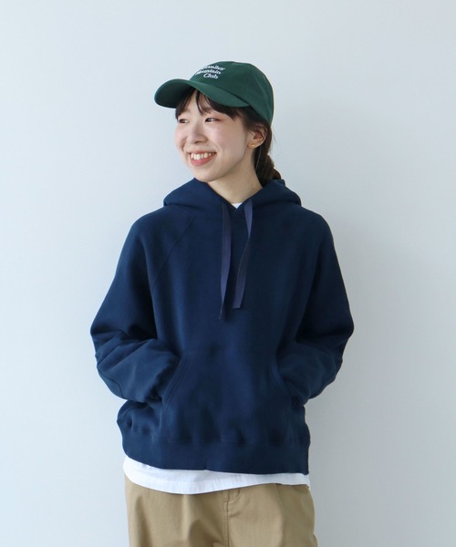 NEW COLOR【Saxe blue】表にリサイクルコットン、裏にふわふわの無撚糸を使ったオリジナル生地の裏毛フーディー。秋冬の新色でニュアンス感のあるサックスブルーが仲間入りしました。リサイクルコットンは生産工程で出る生地の裁断くずから作られた糸を使用しています。ある程度肉厚なスウェットは、目が詰まってガシッとした質感のものが多いですが、こちらはしっかりと着映えする厚みがありながらも、ソフトで着心地の良い柔らかさが特徴です。デイリーに着るアイテムには欠かせない、肌触りがよく気分の上がる生地感を目指しました。様々なシルエットのボトムと合わせやすいよう、もたつかないスパッとした絶妙な丈感。ちょっぴり太めの杉綾の平紐がアクセントに。やや着古したような生地と、スポーティーなアイテムの中にもクラシックさを感じるエルボーパッチが古着屋さんで見つけたような雰囲気。グレーは抜け感のある霜降り調です。Gジャンやカバーオールのインナーに差し色として重ねたり、ボトムに丈の長いデニムスカートやプリーツスカートなどかわいらしいアイテムを合わせるのもおすすめです。※グレーのみリサイクルコットン不使用となります。--------------------透け感:なし裏地:なし伸縮性:ややあり光沢感:なしポケット:あり--------------------【素材の特性・お取り扱いの注意】・取り扱いの注意については取り扱い表示をよくご確認の上、着用をお願い致します。・洗濯の際に型崩れを起こすことがありますので、洗濯後は形を整えてから日陰で平干しをして下さい。・(アイボリー、グレー以外のカラー)汗や雨等で濡れた場合、摩擦などにより色落ちし、他の衣料に移染することがありますのでご注意下さい。※撮影画像は、光の当たり具合やモニターの環境により色味が違って見える場合があります。あらかじめご了承下さい。※お届けする実際の商品と仕様、加工、サイズが若干異なる場合がございます。------------------------------------------------------【 価格改定のお知らせ 】昨今の原料や輸送コスト高騰に伴い価格改定を実施させていただくこととなりました。大変心苦しくはありますが、今後も皆様に喜んで頂ける商品をお届けできるよう努めて参ります。価格改定以前は以下の品番で販売しておりました。旧ブランド品番:5001CT015231商品名:リサイクルコットン 裏毛フーディー-------------------------------------------------------