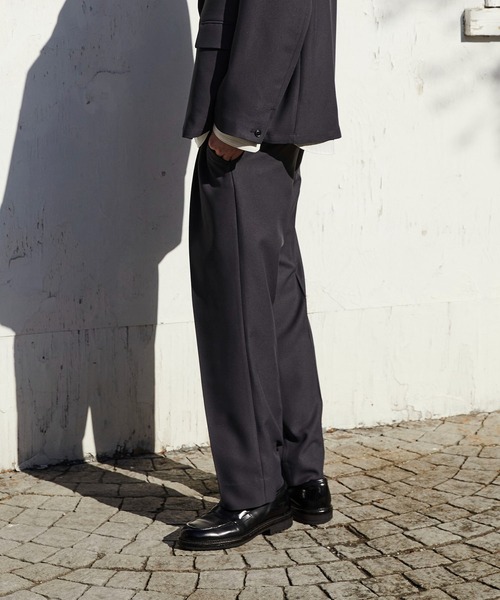 ◆拘り特殊加工により洗濯を繰り返してもセンタープレスが半永久的に取れないスラックスです。太もものゆとりが体型のカバーとリラックス感を出してくれますがテーパードしているので足長でキレイ見えします。テーパードしたシルエットのおかげでスタイルが良く見えます。ウエストゴムと内臓されたスピンドルにより、ウエスト周りのストレスから解放されます。タックインしたシャツの裾が出づらくするシリコンストッパー(滑り止め)をウエスト裏にデザインしています。センタークリースがとれないので、毎日アイロンする手間が省けます。同素材のテーラードジャケットを合わせることで、セットアップとして着用いただけます。◆素材温度調節をする素材を採用。上がりすぎた温度を下げ、下がっている温度を上げる機能を持っているため、室内外の移動をしても快適に、そしてシーズンをまたいで永い間ご着用いただけます。シワになりにくく、毛玉になりづらい為、毎日履いても問題ありません。抗菌・防臭機能も付与されており、汗が付いたり部屋干ししても匂い付かずに安心して使えます。横に伸びるストレッチで快適な着用感が得られます。光沢を抑えたマットな仕上げで高見えするスラックスです。■お手入れ方法洗濯機洗い可能・折り目に沿って畳み、ネットに入れ洗濯機で洗えます。・形を整えて干すことで乾いてすぐでもセンタークリースが綺麗な状態になります。◆同素材でセットアップとしてお使い頂けるジャケットはこちらブランド品番:155553003GRツイルダブルジャケット◆同素材でシルエット違いのパンツはこちら〇ストレート型ブランド品番:155541004GRツイルエバークリースストレートスラックス