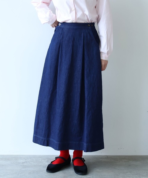 きれいみえするデニムシリーズ。スカートはAWの厚みのあるニットやスウェットなどのトップスと合わせた時にすっきりとコーディネートをまとめられるよう、ボリューム抑えめのAラインの形にしました。シリーズのデニムベストとセットアップとしても着用していただけます。============================透け感:なし裏地:なし伸縮性:なし光沢感:なし============================※素材の特性、お取り扱いの注意水洗い可・・・中性洗剤使用アイロン可・・・あて布使用・この製品は、インディゴ染料にて染めておりますので洗えば洗う程藍染め独特の鮮やかな色と風合が得られます。・特性として着用時(乾摩擦)や汗や雨等でぬれた場合(湿摩擦)色落ちし、他の衣料に色移りする事があります。・他の物に色移りした場合すぐにお洗い下さい。時間がたつと取れにくくなります。・手洗いは必ず単独で洗濯して下さい。(ドライクリーニングも同様)・綿素材の為、洗濯の際多少縮みますので形を整えてから陰干しで自然乾燥させて下さい。尚、乾燥機の御使用は絶対にお避け下さい。・ドライクリーニングは専門店へお願いします。bulle de savon(ビュルデサボン)BRAND CONCEPT女性、誰もが ふっと子供の頃を思い出し 少女のような気持ちに戻れる服。 bulle de savon =シャボン玉の事 石鹸の泡とか、においなど、 懐かしい感じ。設立年月日 1994年8月※ネイビーはサンプルです。実際の商品と仕様・加工・サイズ等が若干異なる場合がございます。※モデルの着用画像は光の関係で商品の色味が若干異なります。※取り扱いの注意については取り扱い表示をよくご確認の上、着用をお願いいたします。※工場の生産の都合上、入荷の時期が前後する場合がございます。ご了承ください。