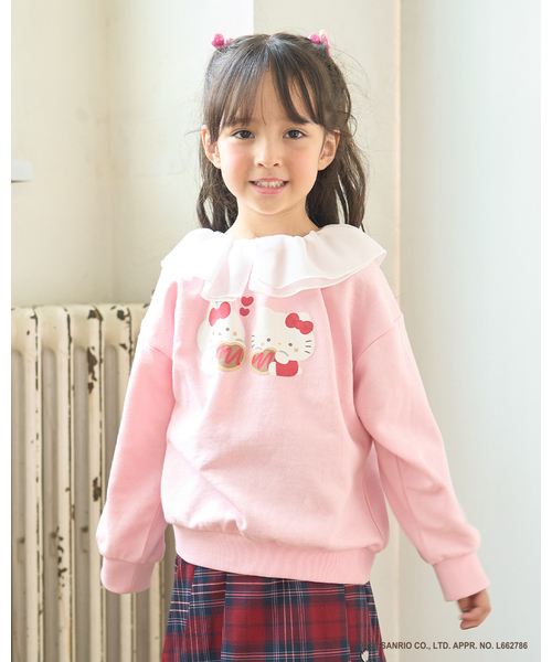 【スタジオハヌル×サンリオキャラクターズ】韓国クリエイティブチームが日本で設立したキャラクターブランドのスタジオハヌルとサンリオキャラクターズのベーカリーテーマのコラボデザインタルト×ハローキティ、パム×ポムポムプリン、ポポ×クロミ×シナモロールの3色展開。大きなシフォン衿がポイント!前後どちらを前に着てもOKなデザインなので、その日の気分で使い分けできるのがうれしい。ぷっくりとしたプリントでより可愛さが際立ちます。[毛玉バイバイうら毛]表面はコットンのみを使用して毛玉になりにくいT/C裏毛を使用。※モデル着用写真より商品写真が最も実物に近い色味です。※掲載画像の商品の色味は、光の照射や角度により実物と色味が異なる場合がございます。 また表示のサイズ感と実物は若干異なる場合もございますので、予めご了承ください。【透け感】透けない【生地の厚さ】普通【伸縮性】あり【裏地】なし【ポケット】なし【アジャスター】なし