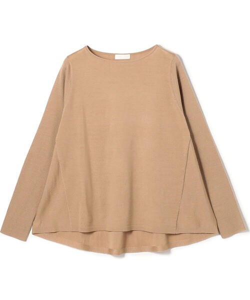 ミニマルでモダンな表情の梳毛ニットシリーズ。シルケット加工を施すことで、さりげない光沢とさらりとした風合いを生み出しています。ワイドプルオーバーはゆったりとした分量感のあるフォルムでリラックスムード漂う一枚。シンプルなネックラインと内側に向く切り替えですっきりとしたフロントに対し、バックは分量のある後ろ下がりのフレアシルエットで女性らしいバランスに。着丈は長くし過ぎず、ワイドからスリムまでさまざまなボトムとバランス良く合わせていただけます。一枚でさまになり、きれいめからカジュアルまで幅広いシーンに活躍してくれる万能なアイテムです。■素材情報厚み:やや薄手透け感:15 グレー・43 ベージュのみややあり光沢:なし 伸縮性:あり手洗い:可裏地:なし※商品の色味は、商品単体または素材アップ画像をご確認ください2025AW商品店舗にお問い合わせの際は、下記の商品番号をお申し付けください。商品番号:11-02-54-02204※※ご自宅でのお洗濯の際は、洗濯方法を十分ご確認の上、やさしい手洗いをお願いいたします。