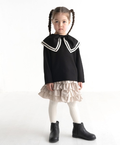 [140-160]もありますフリルのたっぷりついたキュロットパンツです。フリル部分は軽くて薄い素材なので重たくならずオールシーズン活躍するアイテムです。ベーシックなオフ白、黒に加えトレンドカラーのバーガンディは今年らしく着こなせるおすすめのカラーです。● maarook (マルーク)2009 A/Wよりスタートしたベビー + キッズ + おとな服size: 70 ~ 150cm F(160cm)かわいいだけじゃない、シンプルなだけでもないクールだけどちょうどいいバランスの服をつくっています