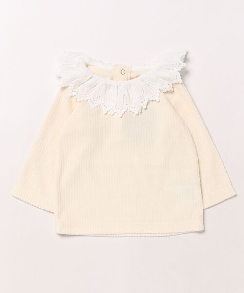 [140-150]もありますなめらかでふわふわ質感のパウダーリブニットTシャツ。クラシカルなレースが程よいアクセントの優しい雰囲気のトップスです。サロペットやジャンスカのインナーとしても活躍します。● maarook (マルーク)2009 A/Wよりスタートしたベビー + キッズ + おとな服size: 70 ~ 150cm F(160cm)かわいいだけじゃない、シンプルなだけでもないクールだけどちょうどいいバランスの服をつくっています