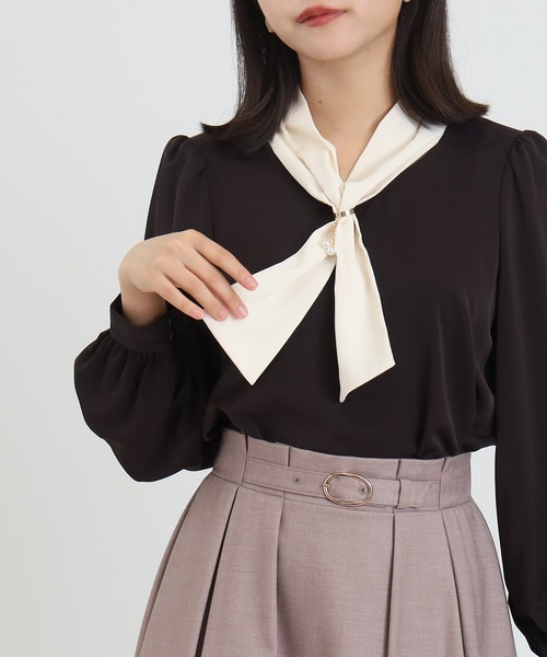 フェミニンムード溢れるボウタイブラウス配色でこなれ感を演出します♪一枚でグッと華やぐリングチャームは、アクセサリーなしでも上品に着映えして、シンプルなボトムスから休日のコーディネートまで活躍すること間違いなし♪肩、袖のギャザー使いやボウタイ襟のタック使いなど立体感のある表情もこなれ感を演出します◎袖のカフスには、うるんした愛らしいボタンを2つ添えて抜け感をプラス♪リングチャームは取り外し可能なので、ホームケアのしやすさもポイントです。【ASTORIA ODIER(アストリア オディール)】「女性の”はたらく”が、もっと楽しくなる服」なりたい自分を叶えるために毎日を大切にしている女性の気持ちに寄り添い、はたらく日も休みの日も、手に入れられる憧れをお客さまと一緒につくっていく。自分のキレイがみつかるフェミニンカジュアルスタイルを提案します。◆《お気に入り登録》でお得な情報を◆・「商品のお気に入り登録」再入荷、ラスト1点、セール情報などの通知も受け取ることができます。・「ブランドのお気に入り登録」新商品や再入荷など、ブランドのお得な情報を受け取ることができます。